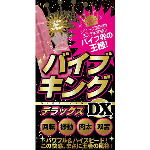 累計50万本の大ヒットバイブレーター「バイブキング」シリーズに新作追加!さらなる快感を目指すバイブエキスパートへ送る、デラックスに変身した「バイブキングDX(デラックス)」。 バイブ界の王様で、絶大的なリピート人気を誇るバイブレーターで、スタンダードタイプの良さをそのままに、デラックスにグレードアップしました。 キングを超えるデラックスな気持ち良さは、伊達じゃありません。 むっちりと太ましい3段ボディに、長めの2本突起なクリバイブ。 粘り強くしっかりとくねるスイングに、奥まで響くパワフルなバイブレーション、回転と振動が別々で操作可能なスライド式コントローラー。 快感重視のエキスパートサイズ。