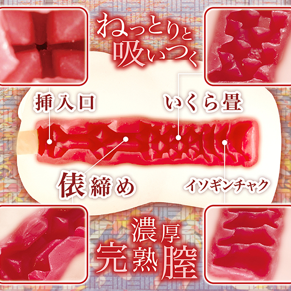 ホール部分はお馴染み「紅彩二層構造」を採用。リアル粘膜のようにねっとり"と吸いつく「濃厚完熟ち○」を表現しています。