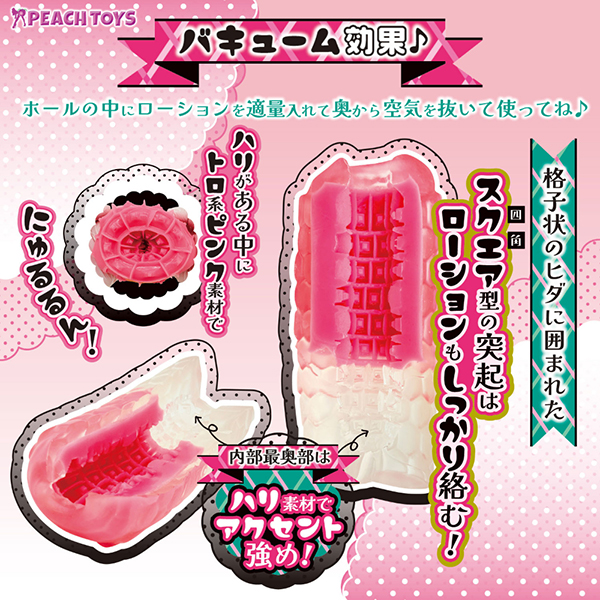 ハリ素材でアクセント強め!のび~るバニーギャルのナカミは、格子状のヒダに囲まれたスクエア(四角)型の突起!!!!!