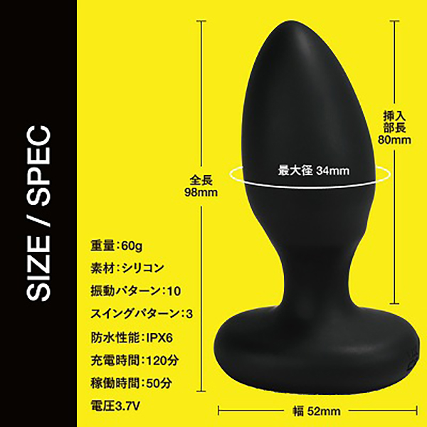 スイングと振動機能が付いたシリコンアナルプラグです。