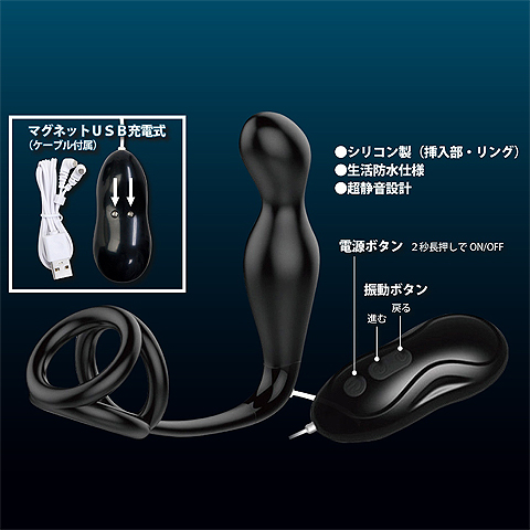 トリプルリングの締め付けとパワフルな振動による前立腺責めの相乗効果でかつてない絶頂感が味わえる、シリコン製の男性向けアナルグッズ。素材として使用しているシリコンは医療用グレードと超高品質なので、安全性が非常に高く、肌触りもシリコンならではの滑らかさなのでスムーズに挿入でき、ヘッド部分で前立腺をピタッと捉えながら、12パターンの多彩な振動で責め立てます。 しかも、前方に付いたトリプルリングでサオ、玉袋、根元の3点を締め付けて射精感をアップさせるので、普通のオナニーでは味わえない強烈な絶頂感に襲われちゃいます。 全身を稲妻が貫くような衝撃的な快感を、あなたもぜひ体感してみて下さい。