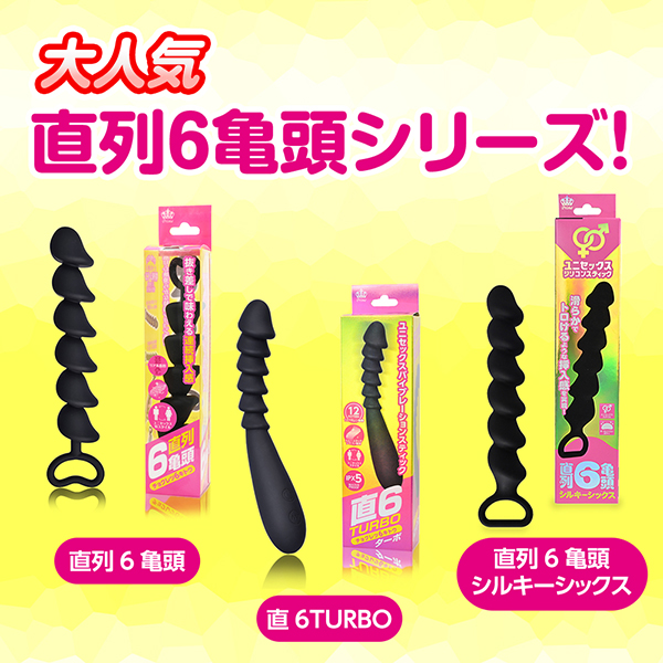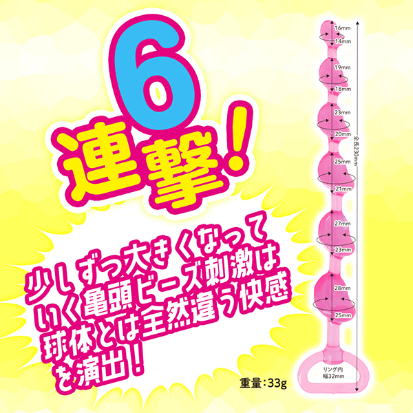 挿入時の抵抗が少ないのにしっかりと引っかかり刺激が楽しめる実用性抜群の亀〇形状の6連撃はそのままに、柔らかくローションのノリの良い高品質TPE素材を採用してより気軽にアナポコ快感が味わえます。