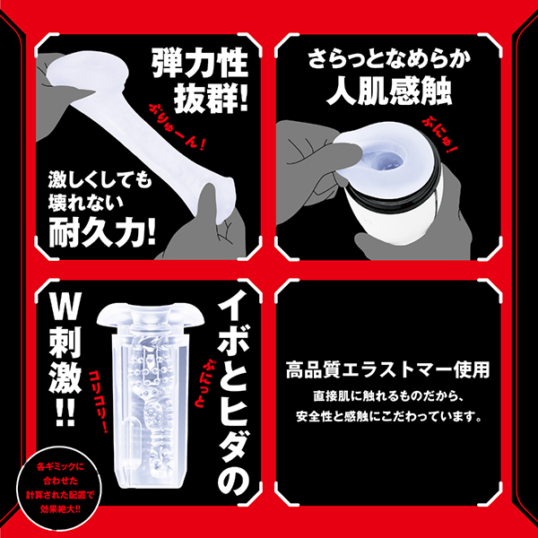 まさに、ホンモノSEX体験!両サイドのエアーバックが膨らむことで締め上げる名器ギミック!根こそぎ吸い込むバキュームフェラに、芯まで響くヘビー級振動!絶頂を超える絶頂のブーストボタン搭載!高品質エラストマー使用。