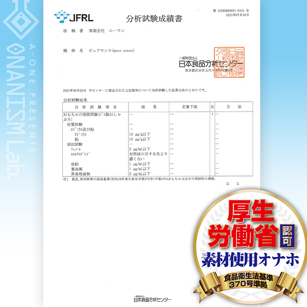 (厚生労働省:食品衛生法基準370号準拠素材)※赤ちゃんのおしゃぶり相当