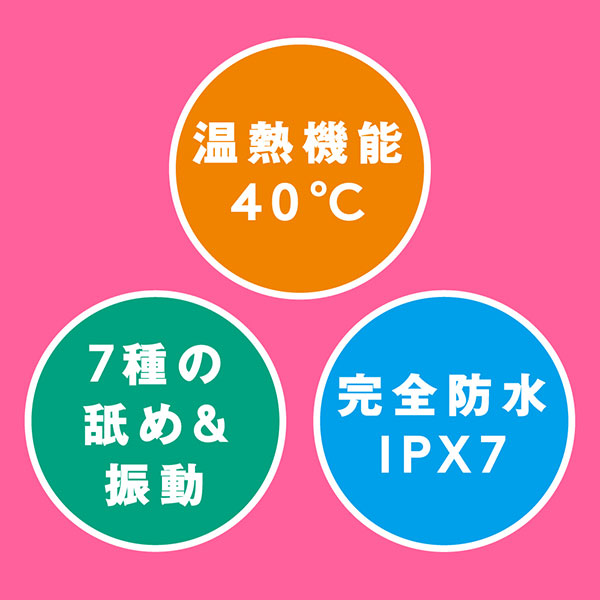 彼の熱い舌を思い出す温感機能は40℃まで温まる人肌温度。先っぽで刺激するチロチロクンニからグイグイ舐め上げる激しいクンニまで多彩なクンニが楽しめちゃう。