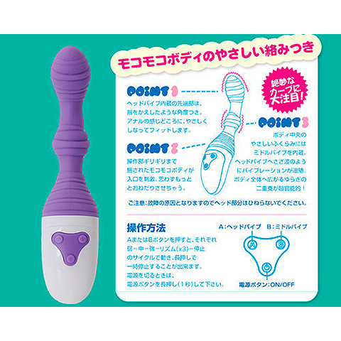 キュートなルックスながらなかなか凶悪な攻撃性を併せ持った、パープルカラーのアナル用バイブレーター。