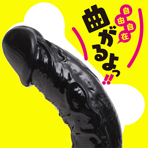 「純国産」の「ぷにっとりあるディルドシリーズ」の黒くて大きな14cmタイプは、大きさだけでなく、内部に芯骨が入っていて、自由自在に角度まで付けられます。