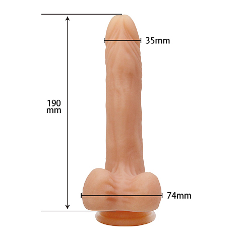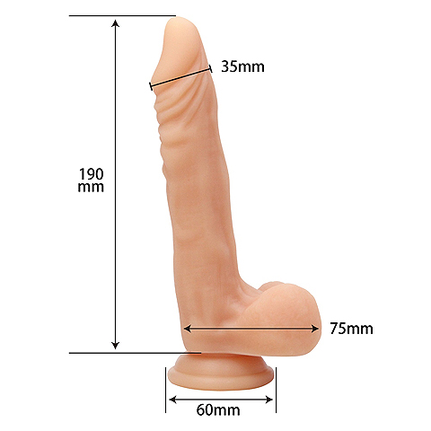 極みの肉感ボディは、長さ19cm、挿入部先端3.5cm、睾丸部長さ7.5cmの立派なサイズで女性が泣いて悦ぶ奥の奥まで、しっかりと先端が届きます。