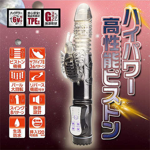 上下ピストン8種類と子機振動36種類とパール回転を同時に味わえる驚愕の防水バイブレーターです。バイブを初めて使うという女性でも扱いやすい小ぶりなバイブレーターです。また、ハイパワー6V仕様の強力タイプなので、使用している時に膣圧に負けて止まってしまうということはないと思います。 上下ピストンと回転動作は同時です。また、クリ責め用の子機は個別に操作可能です。 清潔感のあるクリカラーのボディと小ぶりな大きさ、クリ責め子機にボディにあるGスポ刺激用の膨らみなど、女性の快感ポイントを網羅。 先端素材はプニッとした優しい感触なので挿入時に痛みを感じにくい素材です。 バタフライデザインの子機は、女性器全体に刺激を与えてくれるだけでなく、驚異の36種類の振動パターン搭載です。