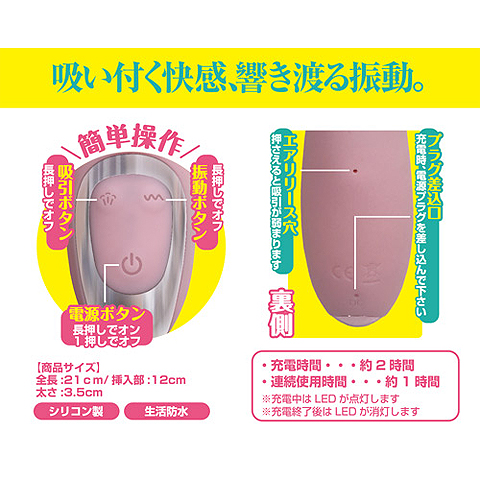 クリトリス吸引タイプの子機が付いた一体型バイブレーターで、一見、古くからある子機付きバイブレーターのように見えますが、クリをチューッと吸われながらバイブレーションを楽しめる悶絶快感バイブです。