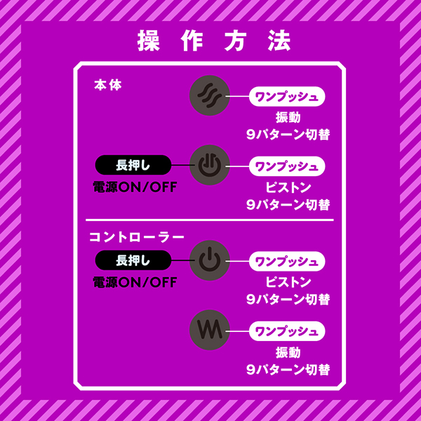★超強力ピストンで完堕ちメス堕ち新境地★PPPより、超強力ピストン搭載で、完全防水&遠隔操作可能なアナニーバイブ第2弾が登場!ピストンギミックはゼンリツをズンズン刺激するメス堕ち構造!先端の曲がった形状がゼンリツをガン責め!9パターンの高速ピストンで止まらない&止められないイキ狂い!タマ&会陰を刺激する強力モーター内蔵でWの快感を味わえちゃう!女の子みたいにイケるメス堕ち仕様の優秀バイブ!いろんな遊び方を模索して、もっと新しい快感を見つけてくださいね!