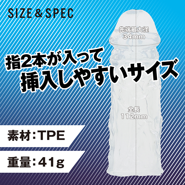 サッと装着出来るサイズ感と高品質なTPE素材採用!指2本が入るから疲れにくくしっかり挿入が出来ます。