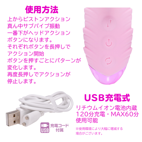 8パターンのヘッドアクション・8パターンのサブバイブ振動・5パターンのピストンアクションが楽しめます。
