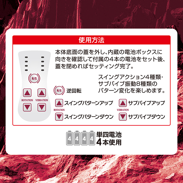 6ボルトのハイパワースイング機能と、4連パールの大回転と、微細振動のサブバイブ(クリ責めバイブ)と、フル機能搭載の超高性能です。