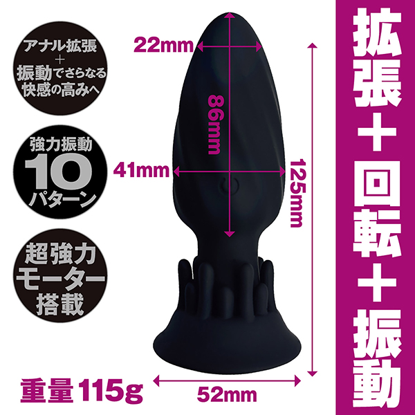 アナル拡張に加え、振動と回転による快感も楽しめる拡張プラグ。