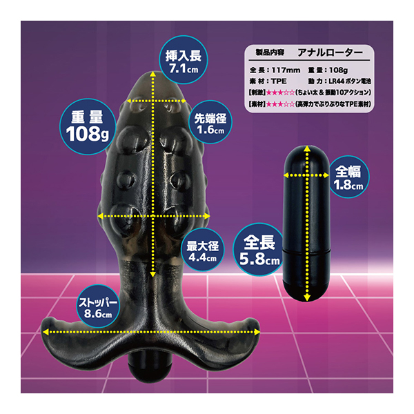 開発!拡張!圧迫!ア●ル快感の魅力を徹底追求!ア●ルプラグに振動10アクションをプラスした、「エ●ナスプラグローター」!