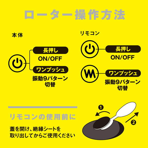 振動9パターン&完全防水IPX7等級&充電用USBケーブル付属&遠隔操作コントローラー付き。