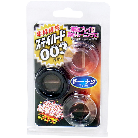 ドーナツリングのしっかりとしたキープ力であなたをサポートする男性補助グッズ「ステイハード003ドーナツ」。3つのカラーのドーナツリングは抜群の伸縮性で、キュッと強力に締め付けてあなたをサポート。単独で使用しても、組み合わせて複数で使用してもOKで、用途に応じてお好みの部分に取り付ければ、持続力アップ効果が期待できます。日々トレーニングに励んで、理想的なオトコを手に入れちゃいましょう。