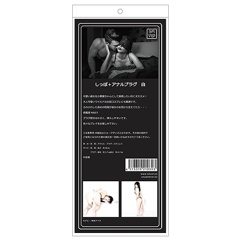 ステンレス製のクールなアナルプラグの台座部分に、フサフサの白いファーを着けた女狐コスプレにも最適なアナルアイテム。可愛い彼女を小悪魔ちゃんにして調教したい方にオススメな商品で、ふわふわの長い尻尾が彼女のお尻から生えていたら・・・大興奮すること間違いなし。 プラグ部分は小さく、長さ4.7cm・太さ2.7cmだから、アナルプレイになれていない方でも安心のサイズです。 セクシーな下着とこの尻尾を組み合わせて、ワイルドなエロチックさをお楽しみ下さい。