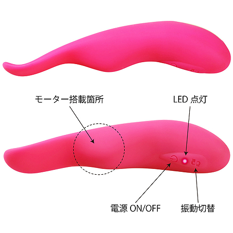 GスポットとCスポット(クリ)を的確に刺激できるように設計された、ユニークな形状のバイブレーター。全体がシリコン素材でできているので、体に優しくて肌触りもとても滑らかで、丸みを帯びた可愛らしいデザインなので、バイブに不慣れな方でも抵抗感なく手にして頂けます。そして、膣内に挿入すると、舌のような形状でクイッと曲がった先端部分がGスポットを的確に捉えながら、中央の膨らみ部分がクリにピタッと当たって、8種類の振動で強力に刺激します。生活防水仕様で水洗いができて、いつも清潔な状態にしておけるので、安心してお楽しみ頂けます。
