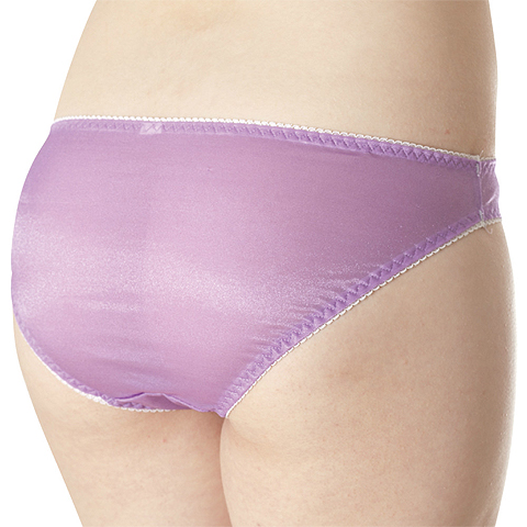 履いているだけで女性らしい気分にさせてくれる、光沢感が美しいパープルカラーのフルバックショーツ。